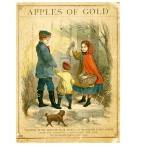 “Apples of Gold” was a publication of the American Tract Society. It began in 1872 and was still being advertised as late as October, 1916 in the American Messenger magazine. It was a four page periodical publication published each week for young children.