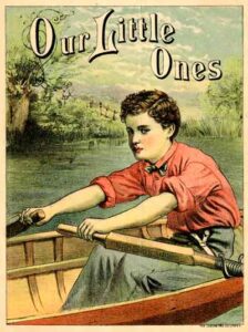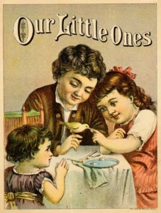 Here we have the cover of the October 3, 1886 issue of Our Little Ones. Monthly circulation of this publication was around 150,000 in 1901. Finding copies of these old children publications is rare. The only large collection of this publication is in the holdings of the Library of Congress, which begins with volume 27 (1899).
